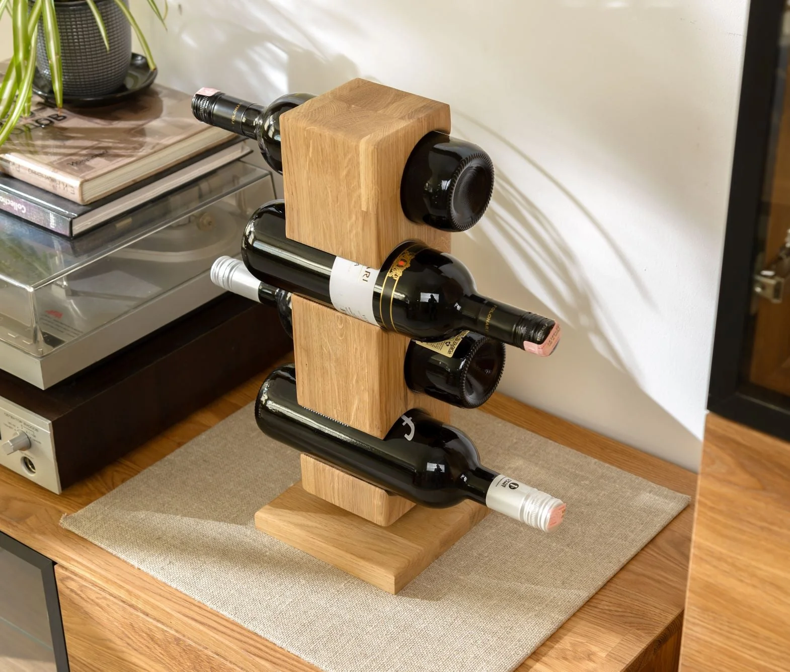 Porte-bouteilles en bois massif de chêne ALMA – Pour 4 bouteilles de vin - NordicStory