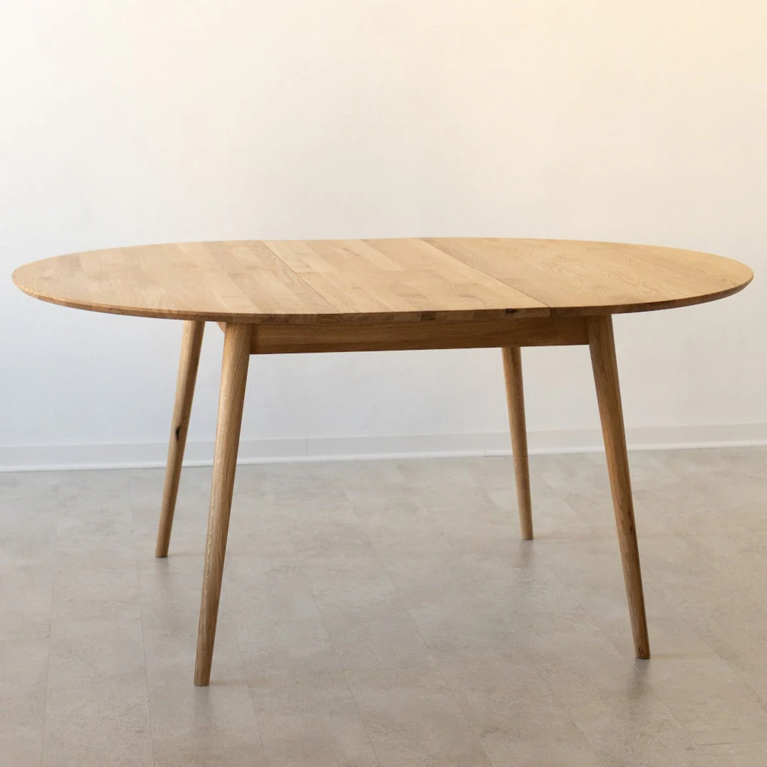 Idéale pour les petits espaces, cette table à manger en chêne massif Escandi 4 vous séduira par son design scandinave intemporel et par la douceur de sa ligne. Elégante et fonctionnelle, elle se transforme facilement en table ovale en permettant d’accueillir de nombreux invités autour de son plateau.