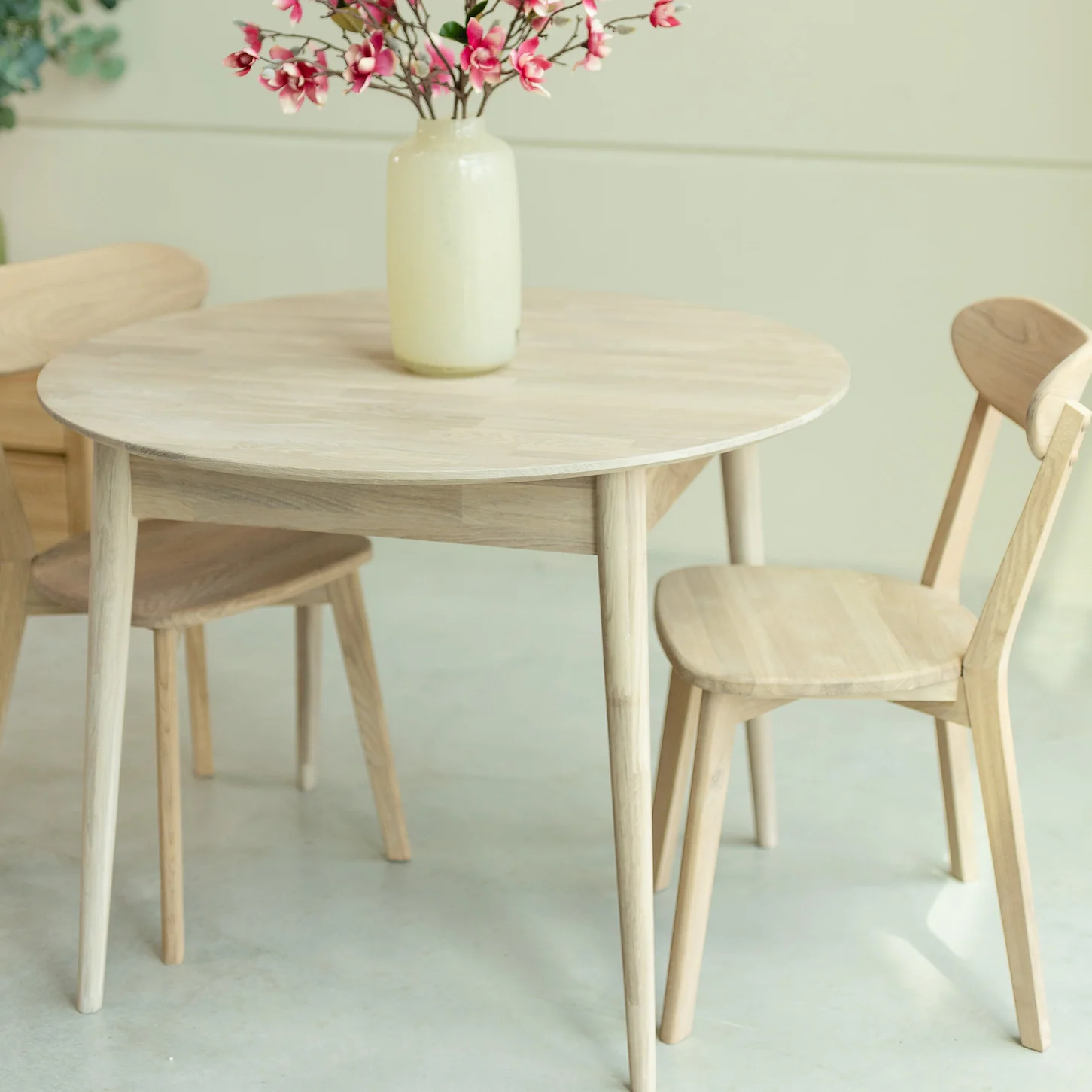 Nous sommes heureux de pouvoir vous présenter les nouvelles dimensions d’une table à manger ronde extensible que vous allez adorer ! Parfaite pour les petits espaces, cette table à manger en chêne massif Escandi 6 vous séduira par son design scandinave intemporel et par la douceur de sa ligne. Etant extensible, elle se transforme facilement en table ovale et permet d’accueillir de nombreux invités autour de son plateau.