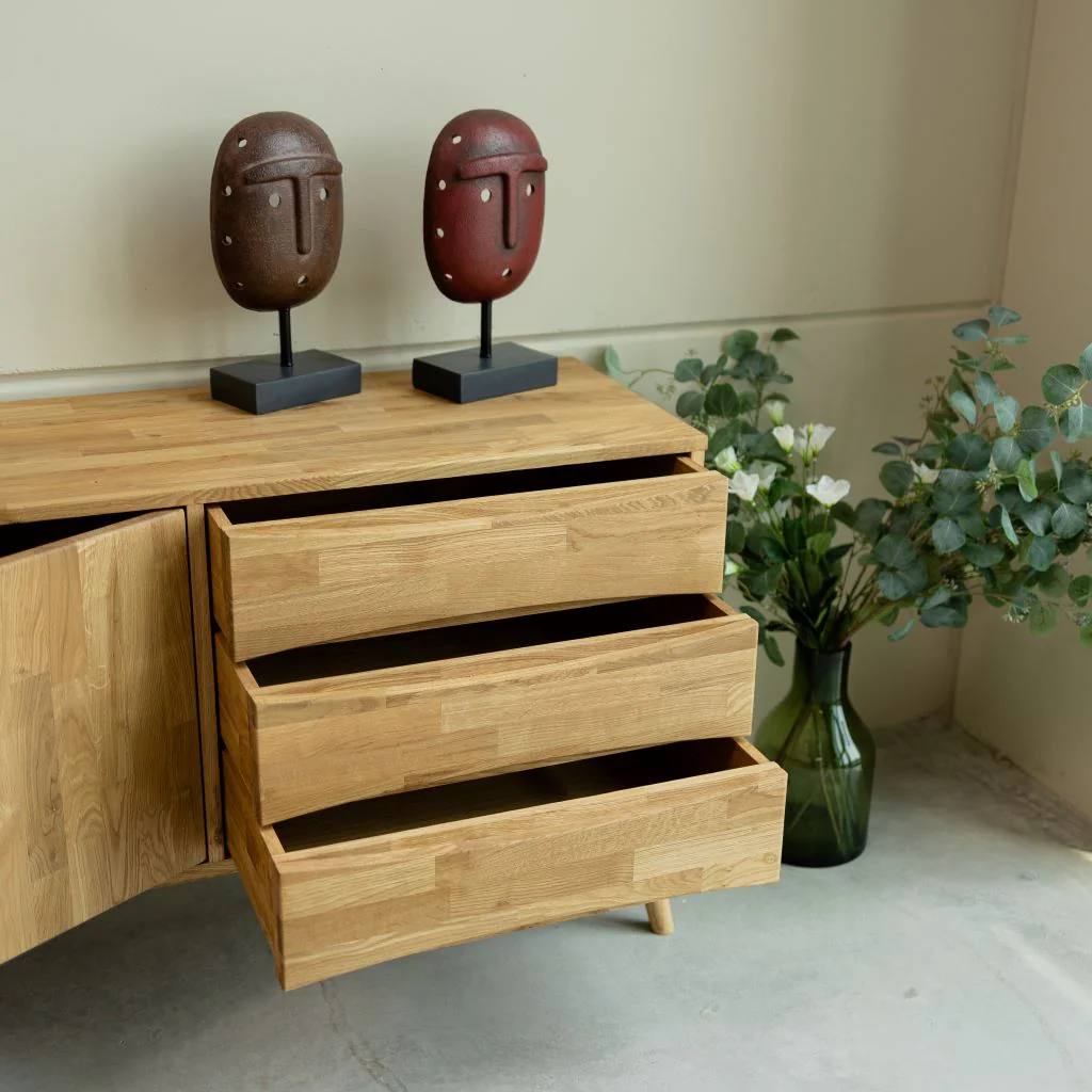Ce magnifique buffet en bois massif de chêne Malmo incarne l’élégance et la simplicité du style scandinave. Avec ses lignes épurées et son design fonctionnel, ce meuble apporte une touche de chaleur et de modernité à tout intérieur. Doté de larges tiroirs et de plusieurs étagères fermées à portes, ce buffet offre un espace de rangement généreux tout en maintenant une esthétique minimaliste.