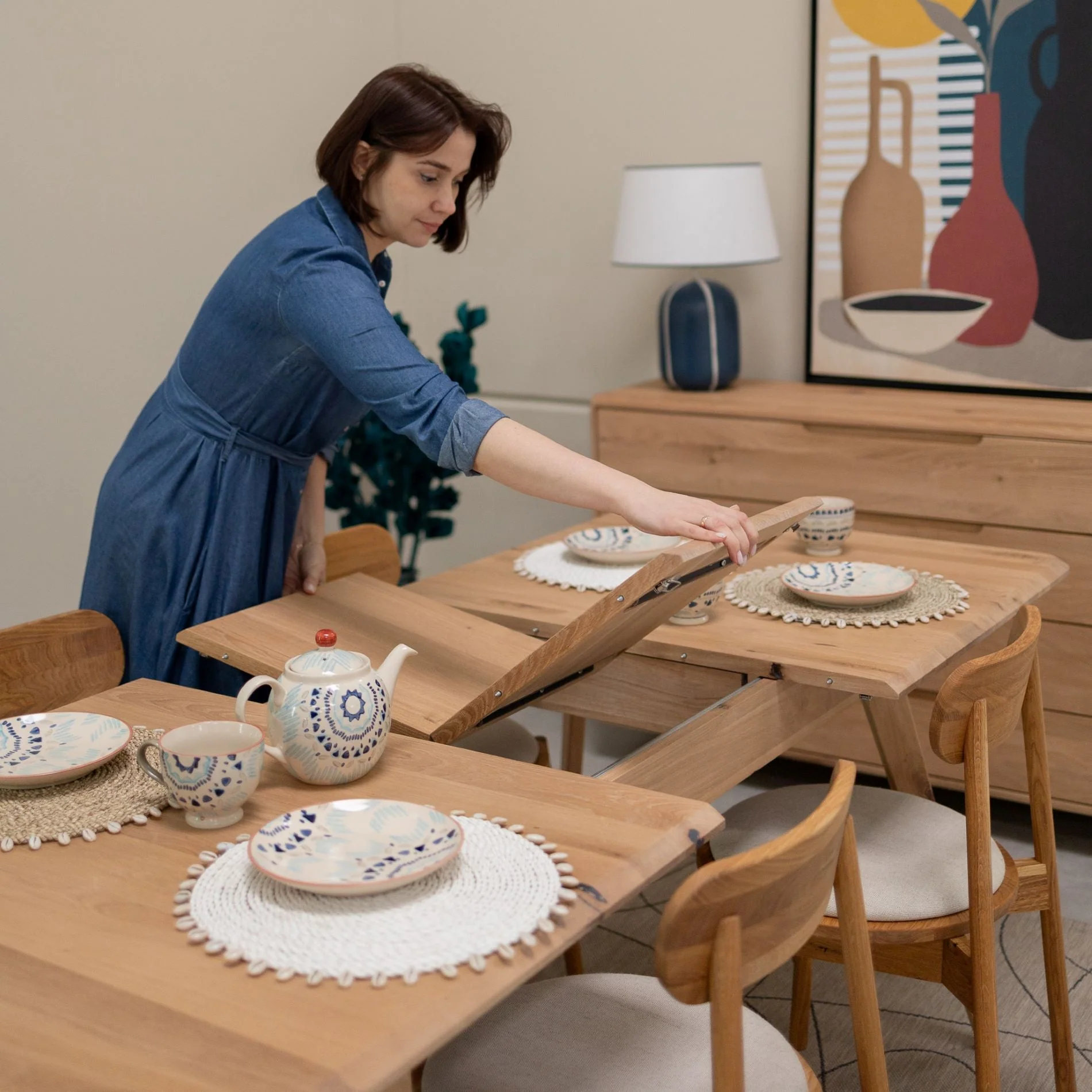 La table à manger extensible Suède en bois massif de chêne ou de noyer est un équilibre parfait entre la beauté naturelle et le design moderne. Grâce à sa structure robuste et sa conception extensible, elle offre une excellente stabilité et permet d’accueillir un grand nombre d’invités. Elégante et fonctionnelle, cette table est disponible en plusieurs dimensions.